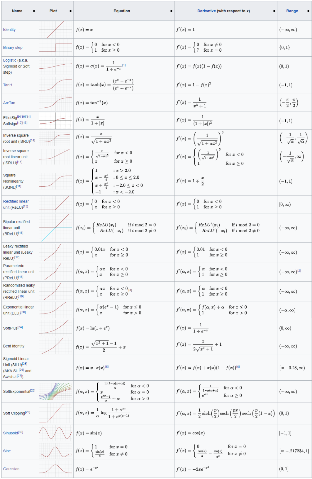 Varias opciones populares de funciones de activación son las siguientes (la figura inferior muestra otras muchas opciones habituales):