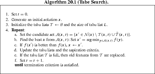 **SVRAI** Metaheurísticas Segunda Parte Como hemos visto en entradas anteriores, las **metaheurísticas de búsqueda** proporcionan estrategias para resolver un problema realizando una búsqueda sobre un espacio cuyos elementos representan las soluciones candidatas alternativas, y que se denomina **Espacio de Soluciones** posibles del problema. La representación de las soluciones se realiza a través de una codificación que debe incluir toda la información necesaria para su identificación y evaluación, un problema íntimamente relacionado con la [Representación del Conocimiento](http://www.cs.us.es/~fsancho/?e=172). Una **búsqueda** sobre un espacio consiste en generar una sucesión de puntos del espacio en el que cada punto se obtiene del anterior por medio de una serie de transformaciones o movimientos. Un procedimiento de búsqueda para resolver un **problema de optimización** realiza recorridos sobre el espacio de posibles soluciones y selecciona la mejor solución encontrada en el recorrido. El objetivo de las metaheurísticas de búsqueda es proporcionar pautas para obtener recorridos que proporcionen soluciones de alta calidad atendiendo también una eficiencia adecuada.  La descripción general de un proceso de resolución de un problema suele seguir una serie de pasos comunes: partiendo de una situación inicial, aplicar iterativamente una operación para modificar la situación actual, hasta que se alcance la situación buscada. En este sentido, un proceso de búsqueda basado en transformaciones o movimientos sobre un espacio de soluciones posibles consiste en la selección iterativa de movimientos para transformar una solución hasta que se cumpla cierto criterio de parada. El criterio de parada determina cuándo se considera resuelto el problema sin que sea necesario disponer, en una situación intermedia, de información de lo cerca que se está de solucionarlo. Sin embargo, las búsquedas inteligentes deben utilizar este y otro tipo de información en el criterio de parada y en la selección de los movimientos. En los **problemas de optimización**, la selección de movimientos y el criterio de parada se realizan teniendo en cuenta uno, o más, indicadores de la calidad de las soluciones encontradas en el recorrido. La evaluación de la calidad de las soluciones se realiza a través de una o varias funciones objetivo, teniendo en cuenta las restricciones del problema (si es más de una, se denomina **optimización multiobjetivo**). Los objetivos se formalizan por una o varias funciones que hay que maximizar o minimizar (supondremos, en la descripción de los métodos de solución, que se trata de maximizar). La estrategia de búsqueda establece los criterios y mecanismos que guiarán el recorrido, y puede incorporar herramientas de una o varias metaheurísticas junto a heurísticas específicas para el problema. Los problemas de optimización aparecen de forma habitual en muchísimos campos científicos y su solución es de crucial importancia para el éxito de multitud de tareas de Inteligencia Artificial. El problema se formaliza por medio de un espacio de soluciones $S$ y la función objetivo $f$. Resolver el problema de optimización $(S,f)$ consiste en **determinar una solución óptima**, es decir, una solución factible $x_o \in S$ tal que $f(x) \leq f(x_o)$, para cualquier $x \in S$.  Las soluciones alternativas se pueden expresar por la asignación de valores a algún conjunto finito de variables $X = \{X_i : i = 1,2,\dots,n\}$. Si por $U_i$ se denota al **dominio** (conjunto de los valores posibles) de cada una de estas $n$ variables, el problema consiste en seleccionar el valor $x_i$ asignado a cada variable $X_i$ del dominio $U_i$ que, sometido a ciertas restricciones, optimiza la función objetivo $f$. El universo de soluciones se identifica con el conjunto $U = U_1 \times U_n = \{x = (x_i : i = 1,2,\dots,n) : x_i \in U_i\}$. Las restricciones del problema reducen el universo de soluciones a un subconjunto de soluciones $S \subseteq U$, denominado **espacio factible**. Los **procedimientos de búsqueda por entornos** recorren el espacio de soluciones mediante un conjunto de transformaciones o movimientos. Las soluciones que se obtienen de otra mediante uno de los movimientos posibles se denominan **vecinas** de ésta y constituyen su **entorno**. El conjunto de movimientos posibles da lugar a una relación de vecindad y una estructura de entornos en el espacio de soluciones cuya elección es un aspecto trascendental en el éxito de los procesos de búsqueda. Además de una implementación y evaluación eficiente de los movimientos, las propiedades de la estructura de entorno resultante intervienen en esta elección.  El entorno de una solución está constituido por las soluciones a las que se puede acceder desde ella por uno de los movimientos posibles. Formalmente, una estructura de entornos sobre un espacio o universo de búsqueda $U$ es una función $E : U \rightarrow P(U)$ que asocia a cada solución $x \in U$ un entorno $E(x) \subseteq U$ de soluciones vecinas a $x$. El esquema general de un procedimiento de búsqueda por entornos consiste en una ligera variante del esquema general de búsqueda anotado anteriormente: generar una solución inicial y, hasta que se cumpla el criterio de parada, seleccionar iterativamente un movimiento para modificar la solución. Las soluciones son evaluadas mientras se recorren y se propone la mejor solución encontrada del problema. En el proceso de creación de los movimientos se debe tener en cuenta que, aunque movimientos más complejos suponen un enriquecimiento de los entornos, con lo que se puede mejorar el acercamiento al óptimo, se corre el riesgo de perjudicar la eficiencia del algoritmo al tener que contemplar un número mayor de movimientos posibles en el proceso de selección. Otra característica importante de los movimientos es la factibilidad de las soluciones aportadas. Los **movimientos factibles